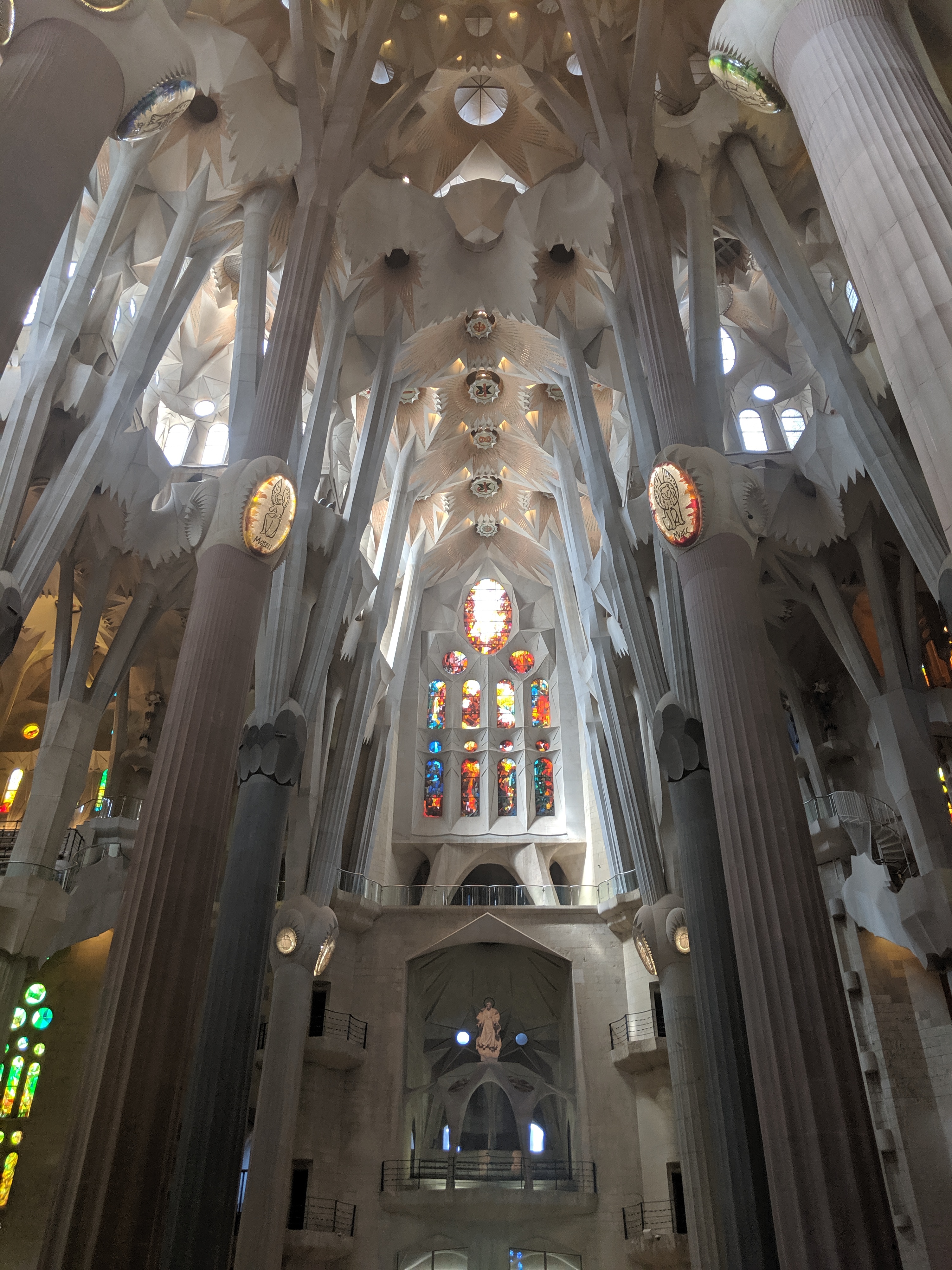 I was awestruck by the exterior of La Sagrada Familia, but the inside took my breath away. The stained glass is simply beautiful and changes the inside light as the day moves forward. One side, in blue tones, represents the morning, which is the same side as the nativity scene. The side that is red represents evening light and is the same side as the passion side. There are over 50 columns in the interior and Gaudi believed all columns should look like nature. There are just not enough words to describe the complexity and beauty of the interior of La Sagrada Familia.