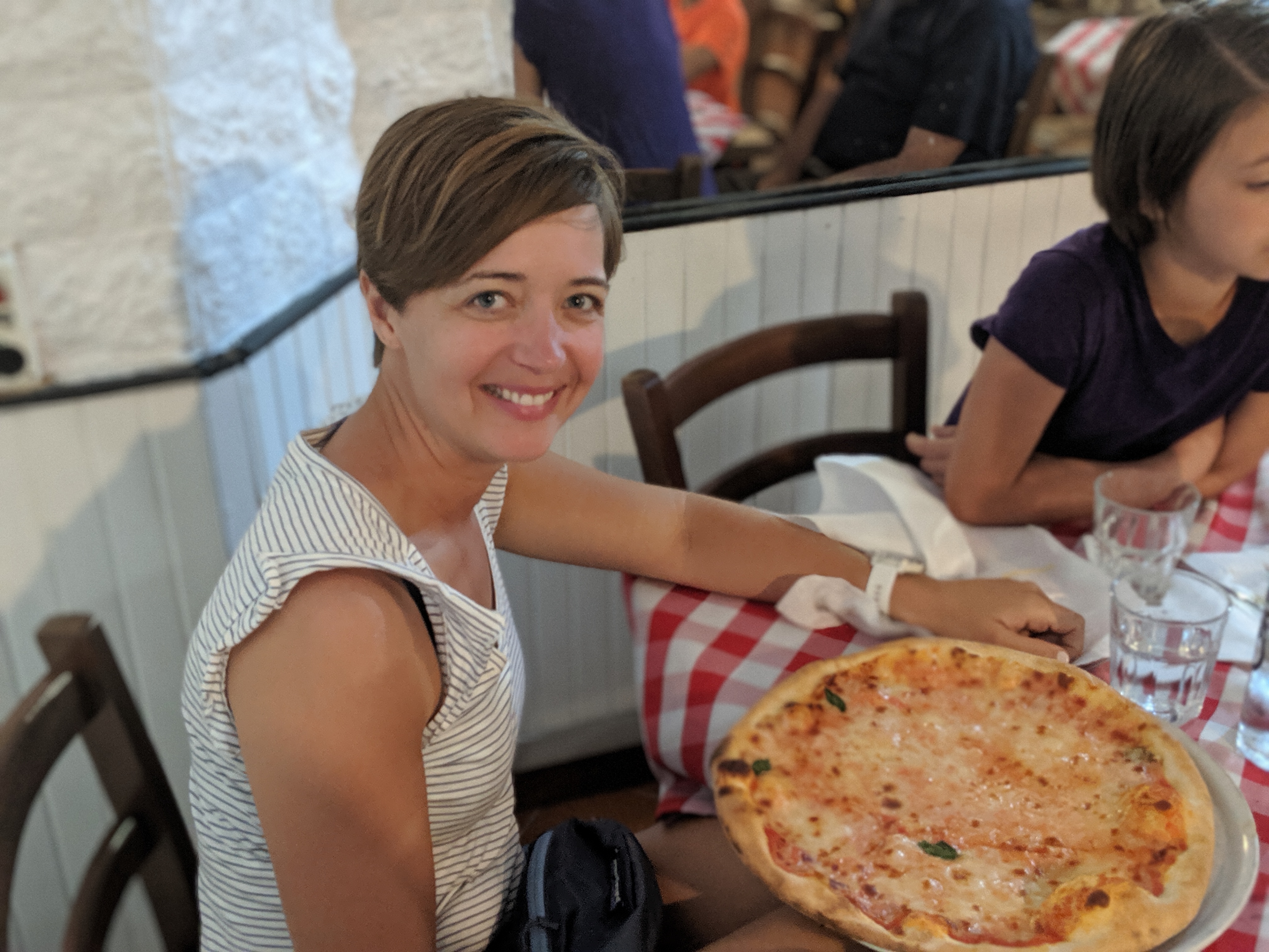 Next, we met back up with my parents and found a restaurant that served pizza. The pizza was 6.50 Euros so we thought they were individual so we each ordered one. They we’re not individual. They were more like a medium and very good. Good crust, very little sauce, and lots of cheese.