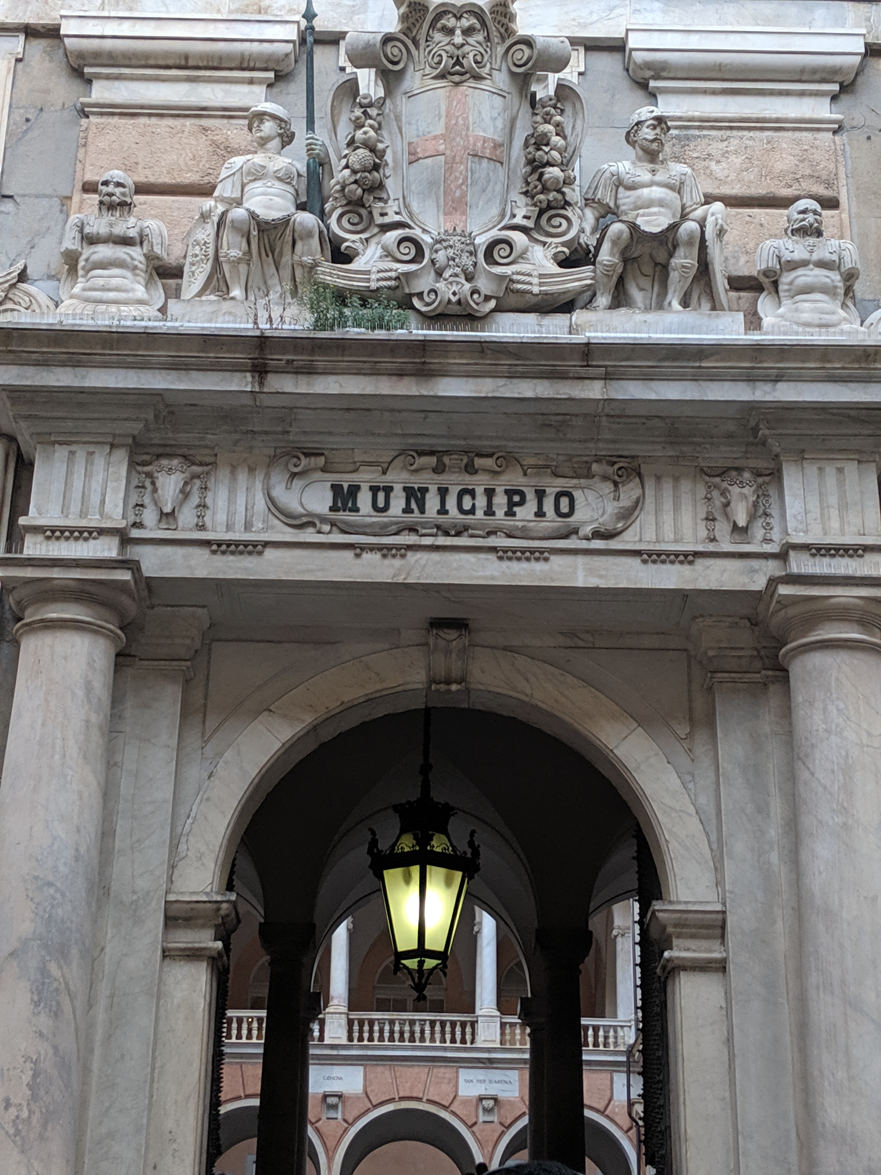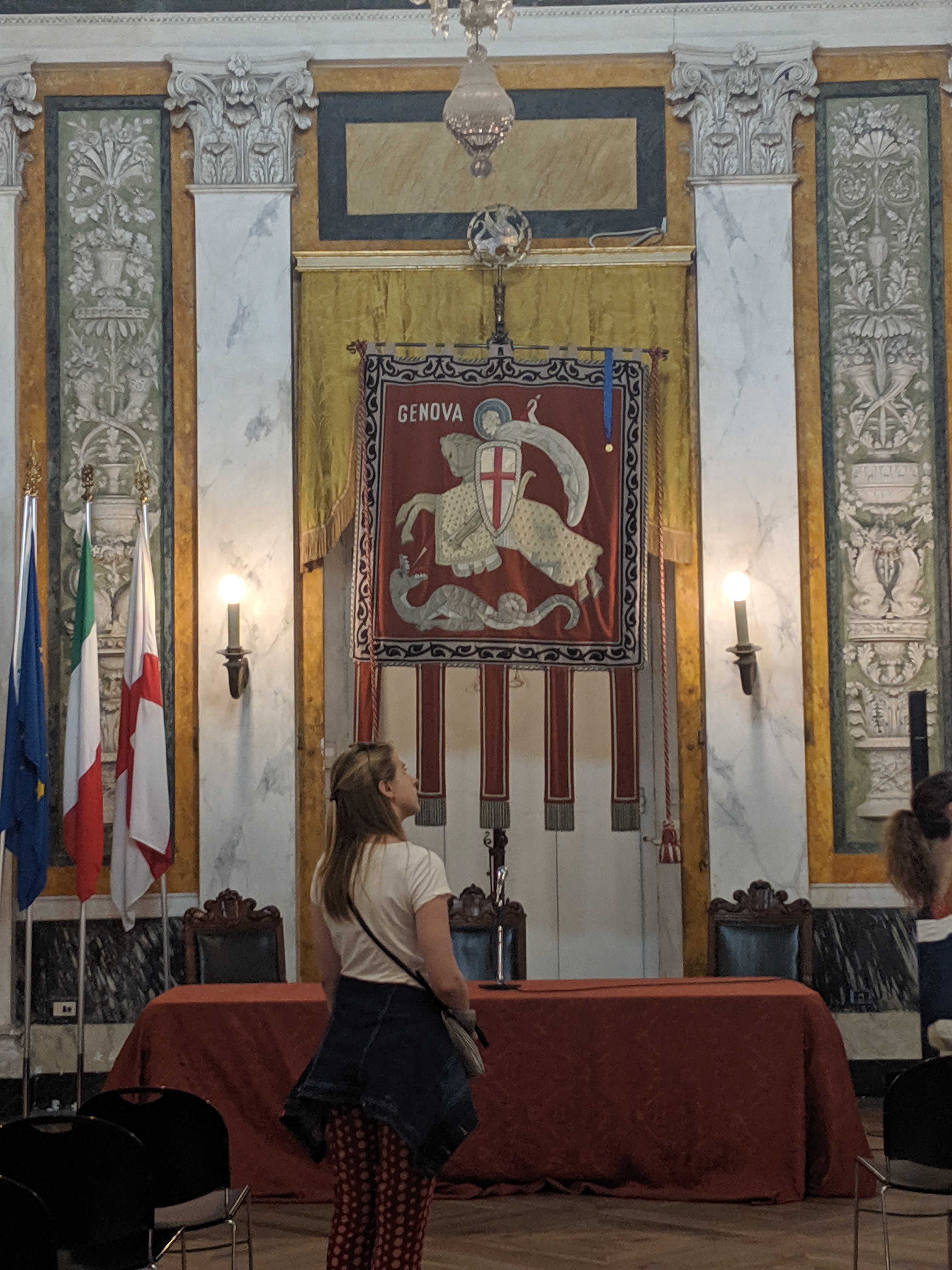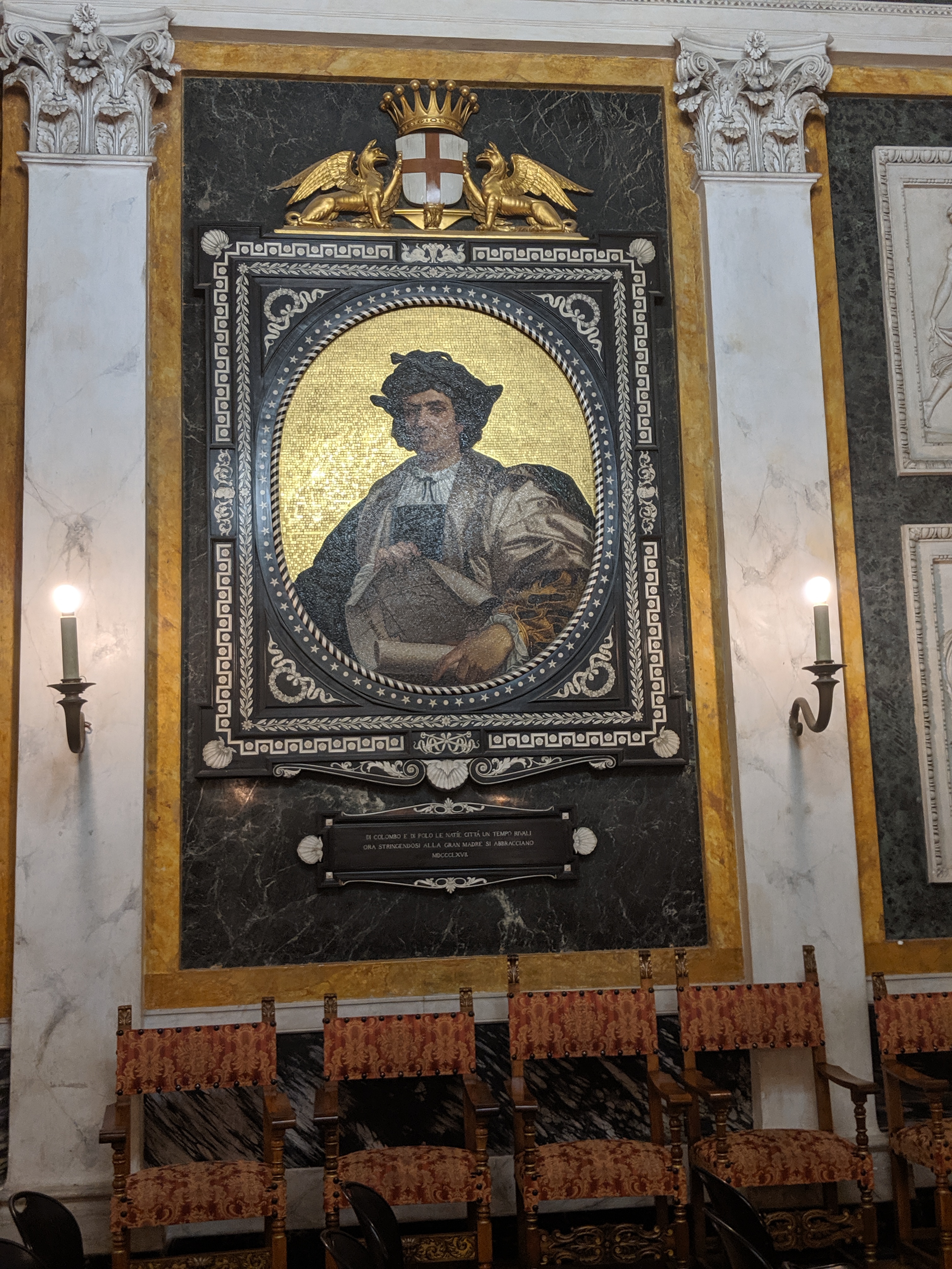 We ended up in the Genova Municipio building. It was a beautiful building that displayed 18th century art, including murals of Marco Polo and Christopher Columbus. Genova is the birthplace of Christopher Columbus. I find it amazing how in Europe, but especially Italy you can just stumble into beautiful buildings and works of art.