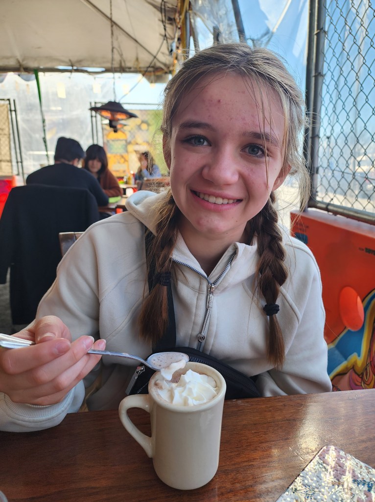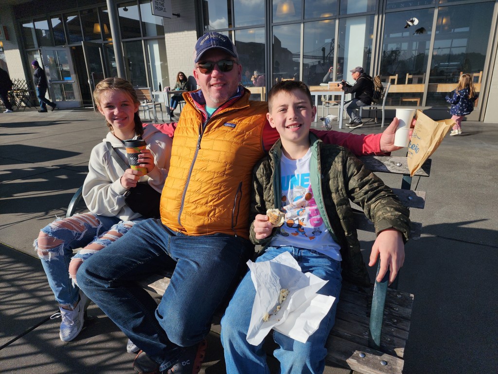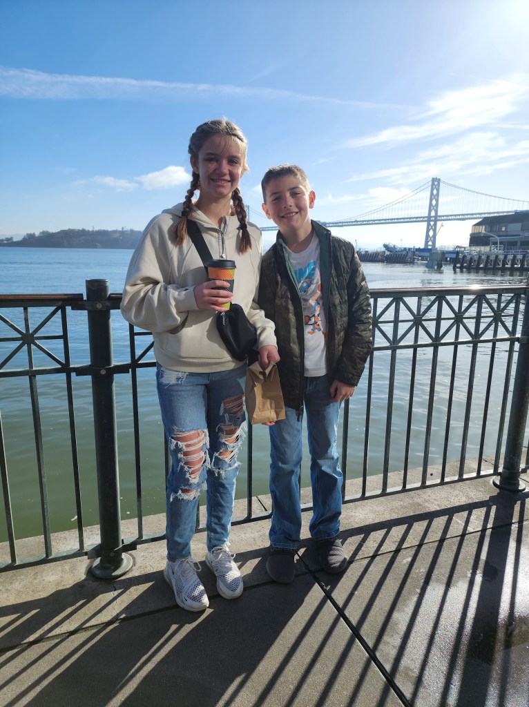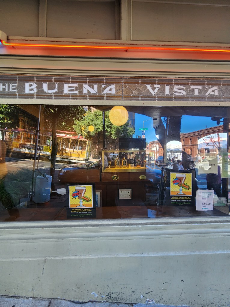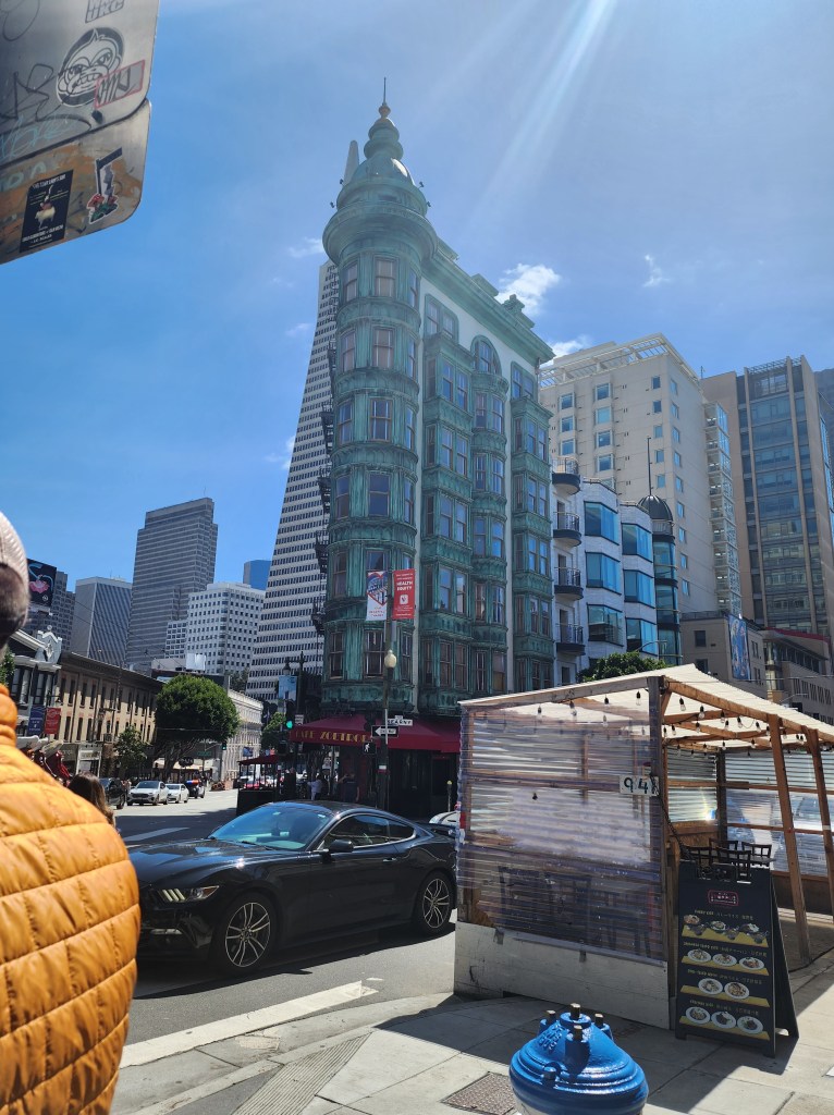 At the Ferry Building, we met up with our Tour Guide. Maria. We booked Maria on Viator, Here. I wrote a short review here. Maria showed us some of the foods in the Ferry Building. We had frozen hot chocolate, empanadas, and tea service and dim sum. After this we walked up to the North Shore for some Italian desserts and a Slice of Pizza. On our way, we ran into the “St. Stupid’s Day Parade”. It provided some entertainment, but it made streets a little extra crowded.