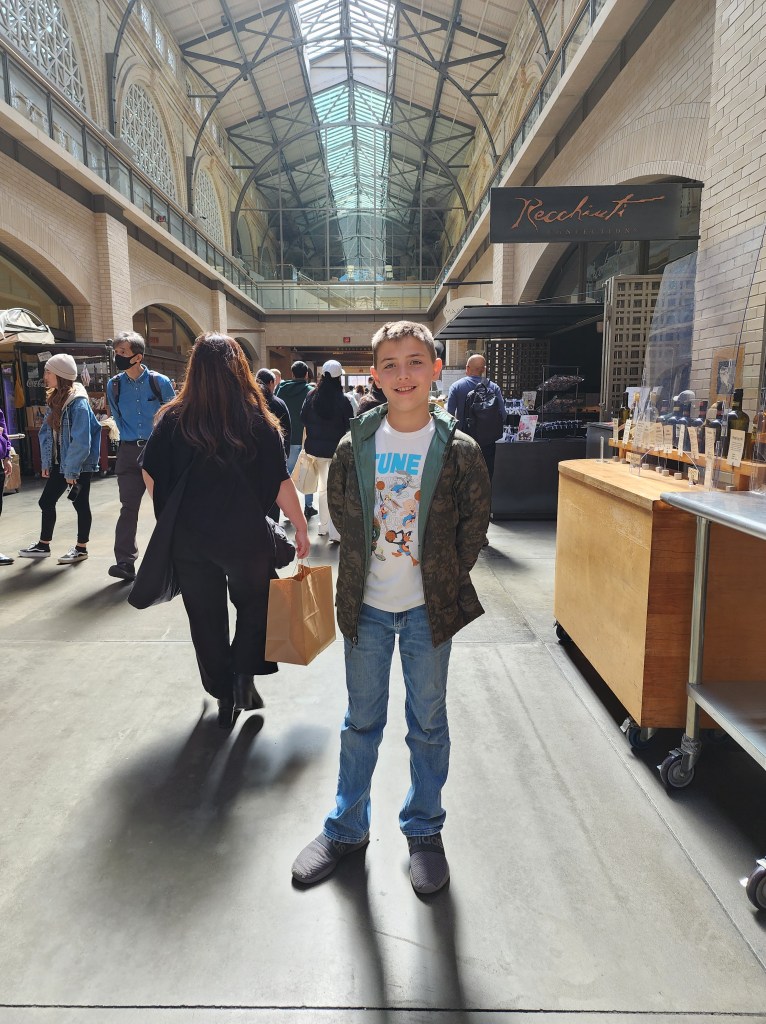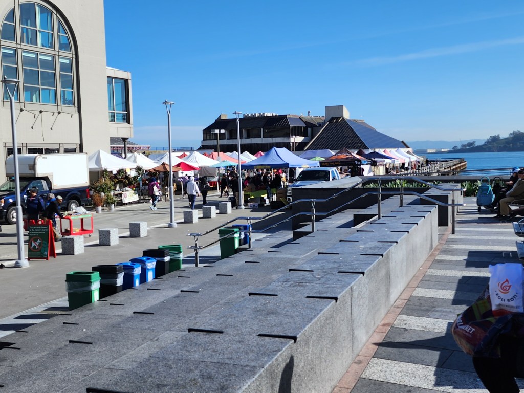 We started our morning walking down to the Ferry Building for the Saturday Farmer’s Market. The Ferry Building has merchants inside the building, as well as vendors set up in tents all around the perimeter on the weekends. If you are in San Francisco on the weekend, stop by the Farmer’s Market at the Ferry Building. While we were there, we grabbed some food and coffee and sat outside by the water. There was food, fresh flowers, crafts and more food. So much food.