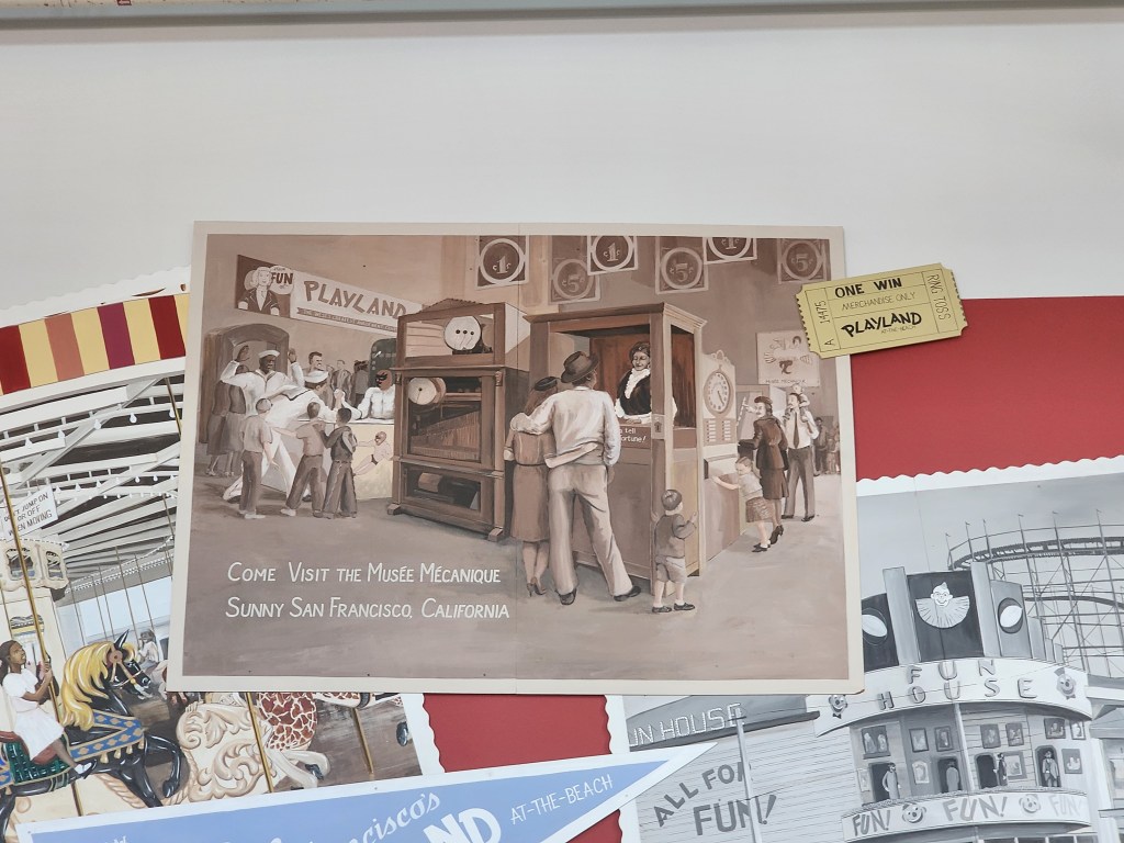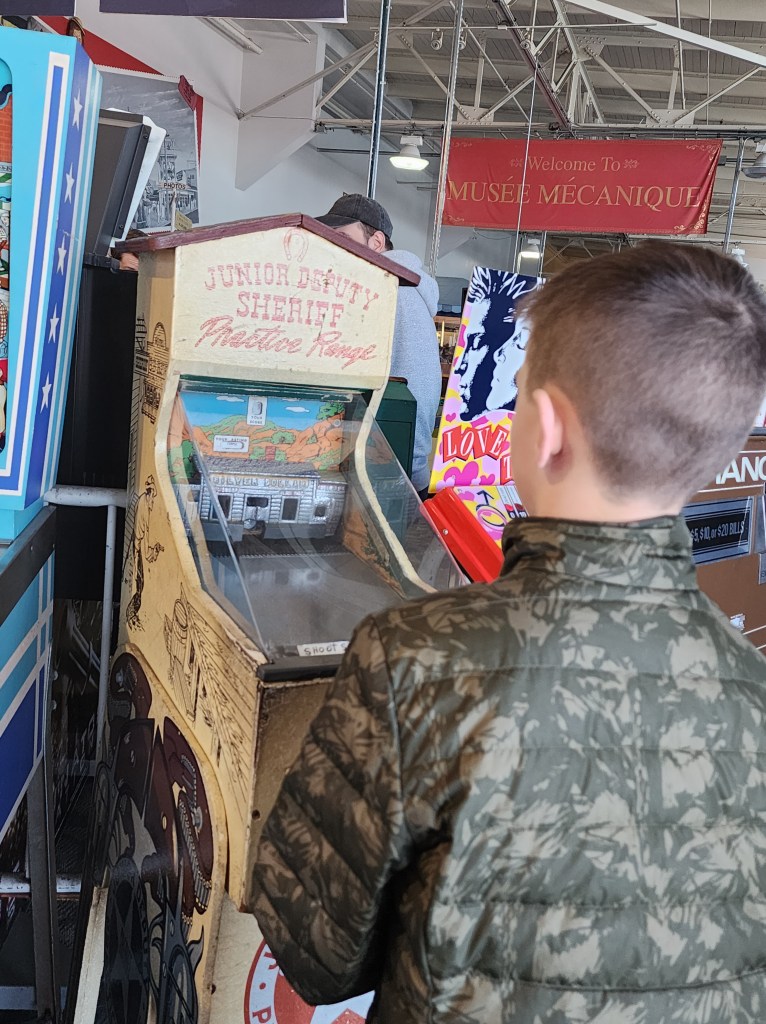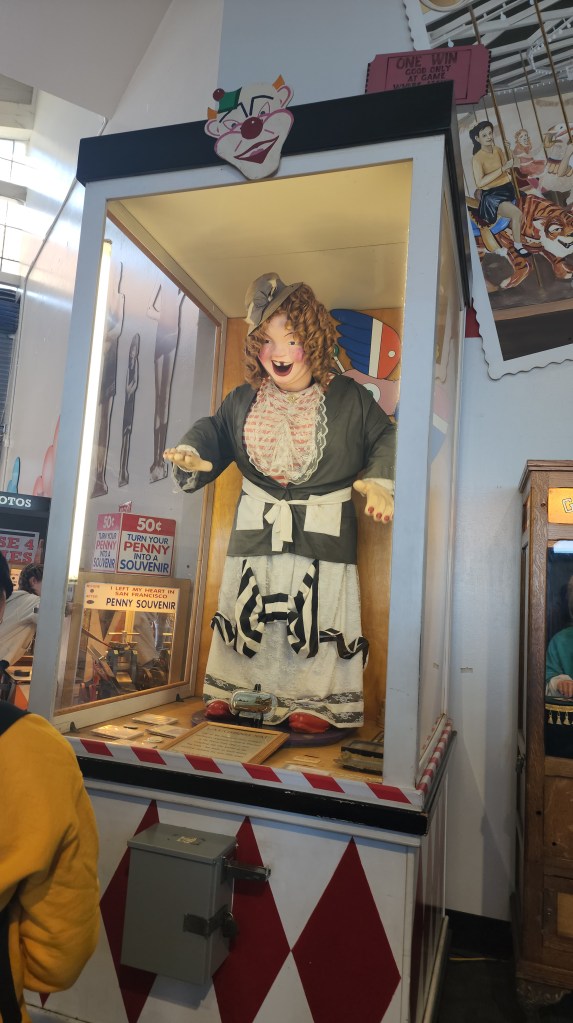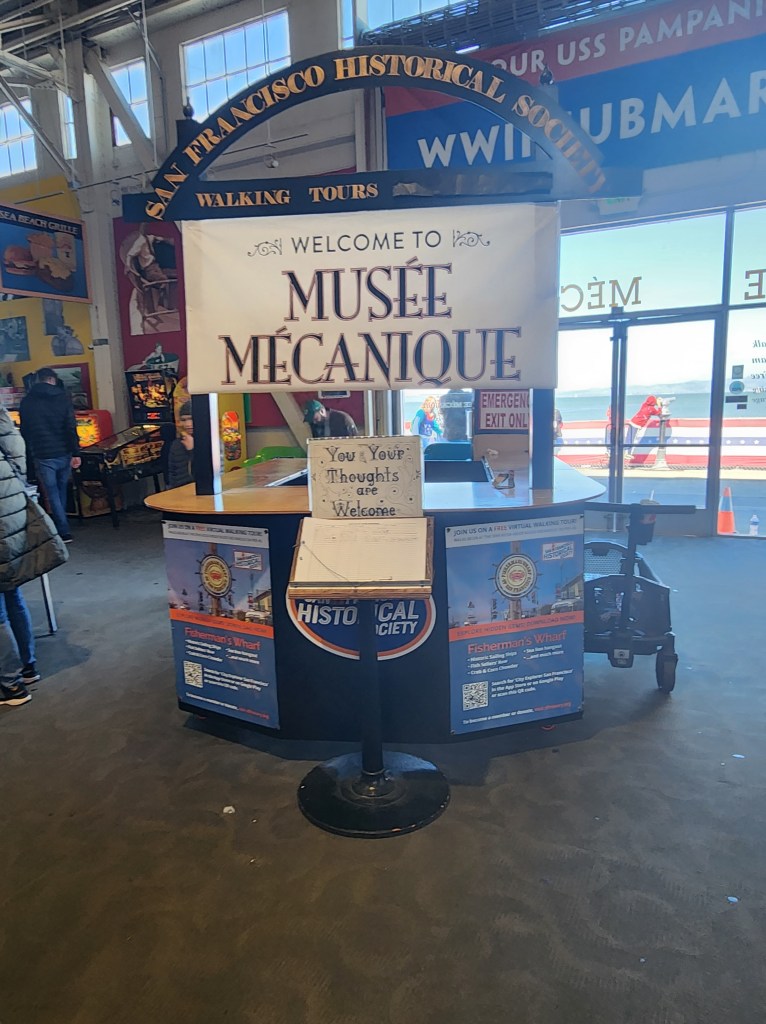 As we headed towards Fisherman’s Wharf, we saw advertisement for a WWII Submarine tour. Jack has been really interested in WWII lately, and we told him if we saw anything in San Francisco, we would visit it. On our way down the pier to the Submarine, we ran into the Musee Mecanique. Our guide, Maria, had suggested we visit this, but I guess I didn’t understand what she was referring. If you end up in San Francisco, save about 30 minutes to visit this place. It has so many old coin operated games and entertainment. We spent $20 in quarters and had a blast. Once done at the Musee, we visited the submarine.