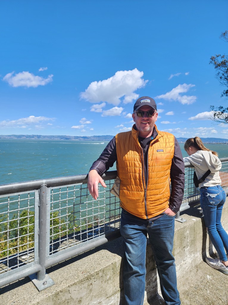 Today, we had a quick breakfast at Honey Honey creperie before catching our bus for our excursion of the day. We went on an Alcatraz with Sausalito and Muir Woods Excursion, again booked on Viator. Once on our bus, we stopped quickly before crossing the Golden Gate Bridge to get pictures with a beautiful view of the bridge. We had similar views on our bike tour. After crossing the Golden Gate Bridge, we headed to Muir Woods. Our tour guide, Ben, was basically in charge of getting us from point to point, but did not guide us through any stop on our trip.