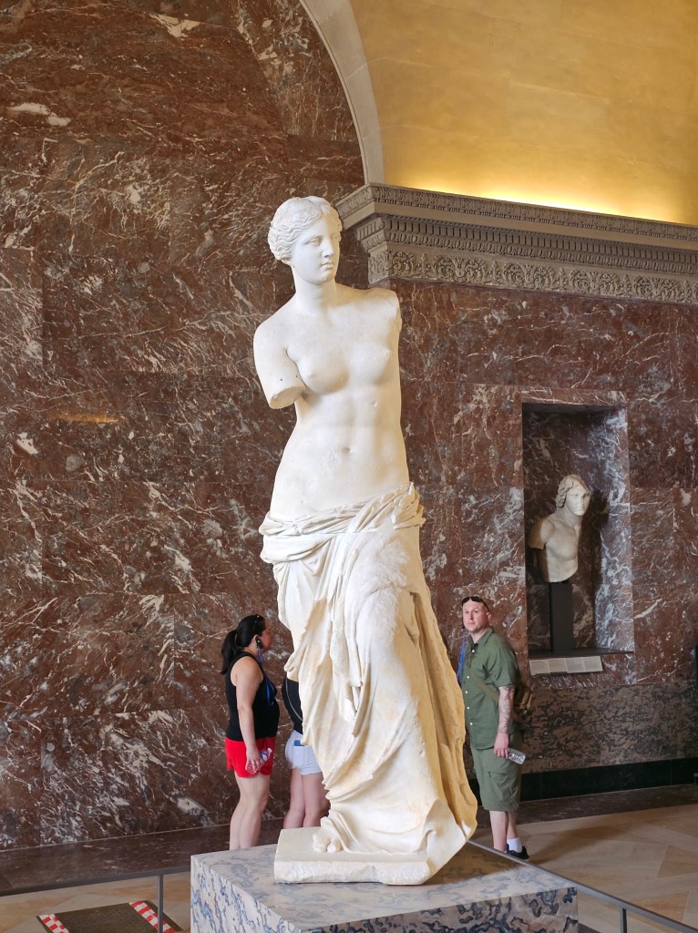 Here is what I will say about the Louvre: We are not super into art. The Louvre was hot and crowded and, like most of Paris, smelled of body odor. We had 1 day available to tour it. We had a half day tour that sped through to the high lights and provided a lot of history of the building and the popular works of art. I, personally, could not wait to get out and breath fresh air. The crowd at all the “highlight” points, especially the Mona Lisa, was a little crazy. People push, camp out in front of others, and are generally rude. If I was in Paris for a longer period of time, I would break the Louvre into smaller sections for a more in depth tour over more days. I was really interested in what we learned, but the heat, lack of water, and crowd got to me.