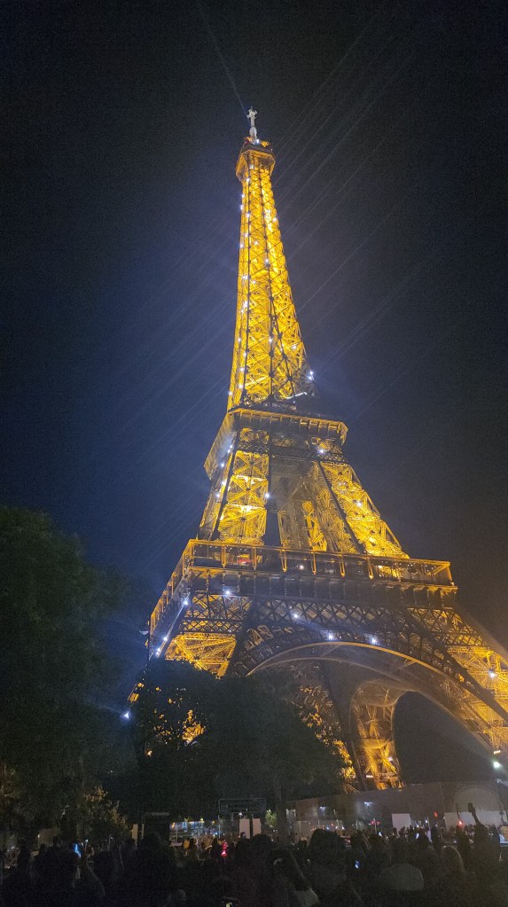 After dinner, we were closer to the Eiffel Tower than we had been yet, so we decided to pay it a visit. From my prior visit, I remember how spectacular the Eiffel Tower was at night, especially on the hour, so it was a must see. The twinkling lights come on the hours and last for five minutes. Belive it or not, 10:00pm wasn’t dark enough, so we waited for the 11pm light show. It was so worth it.