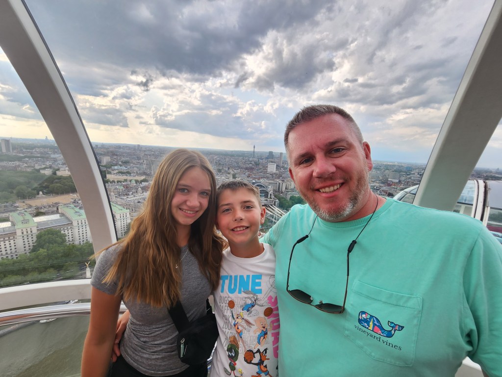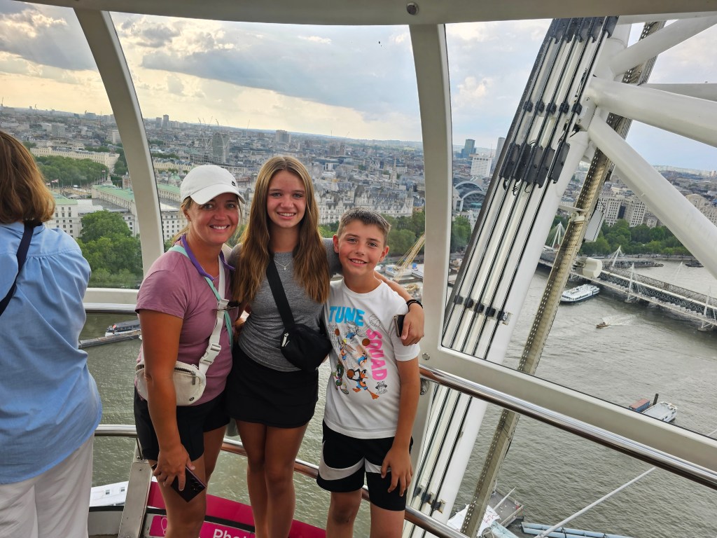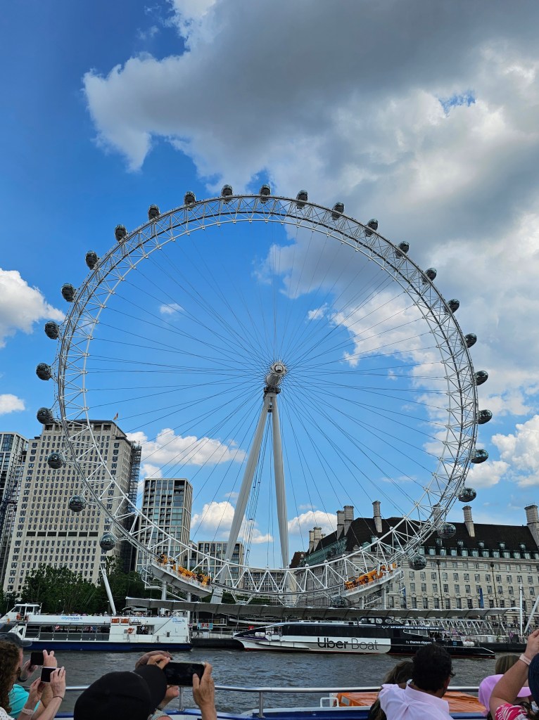 Next, we took a cruise down the Thames and took a ride on the London Eye. While we did pre-purchase tickets through our tour guide, these were not skip the line tickets and our wait was probably close to an hour. The London Eye was a nice view of the city and we enjoyed finding different landmarks. It is not something I would revisit.