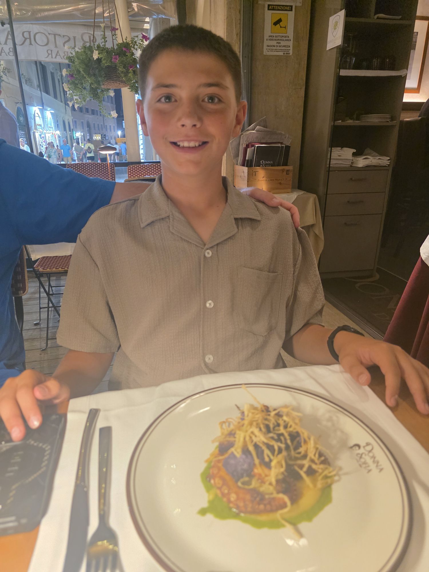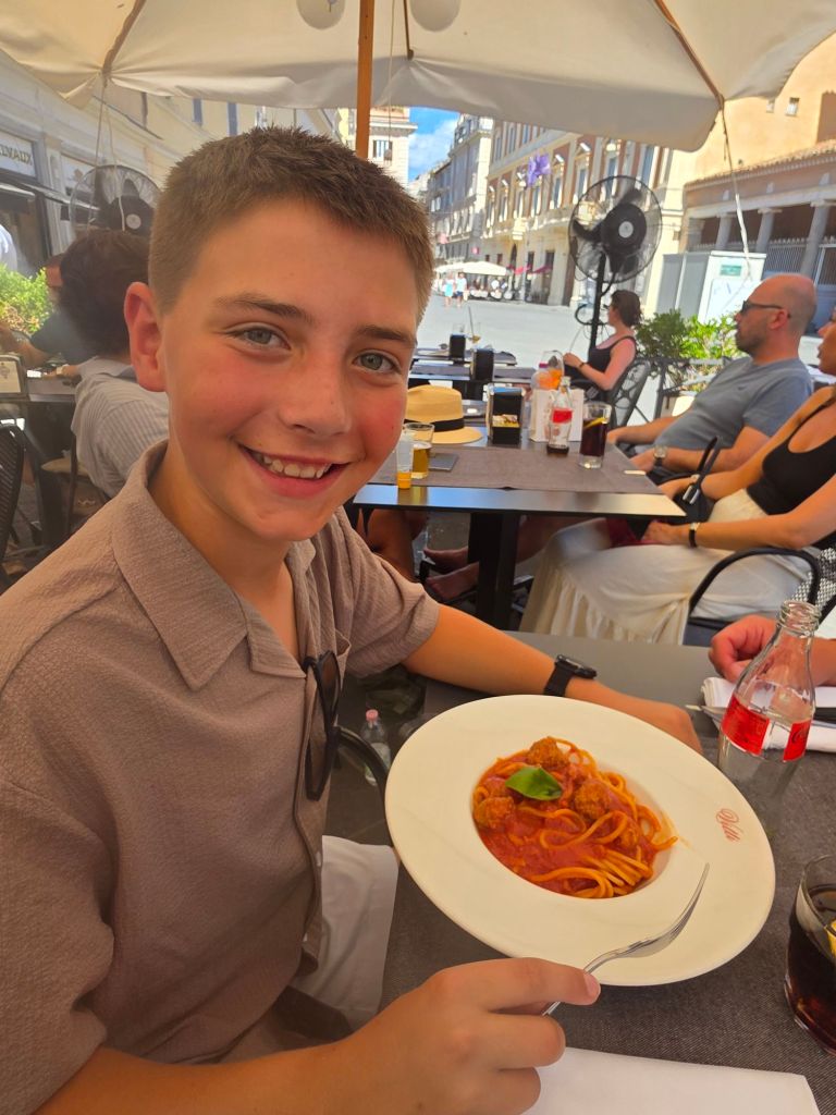 After our nap, we headed out to find a bite to eat. It was around 8:30pm at this point. The area near our hotel is full of restaurants with servers beckoning you to try their menu. We picked one quickly and enjoyed it. Time for bed and ready for another hot day in Rome tomorrow! Ciao!