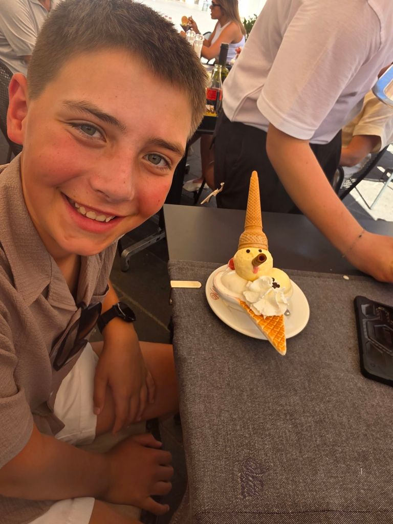 Our hotel is right in the main shopping district of Rome on Via del Corso. The street is lined with luxury shops, restaurants, and gelato shops. After a little bit of shopping, we had a bite to eat and some refreshing drinks. The kids were just thankful for ice cubes in their drinks. Today had a high of 99 degrees, so if we look hot and tired, it is because we are.