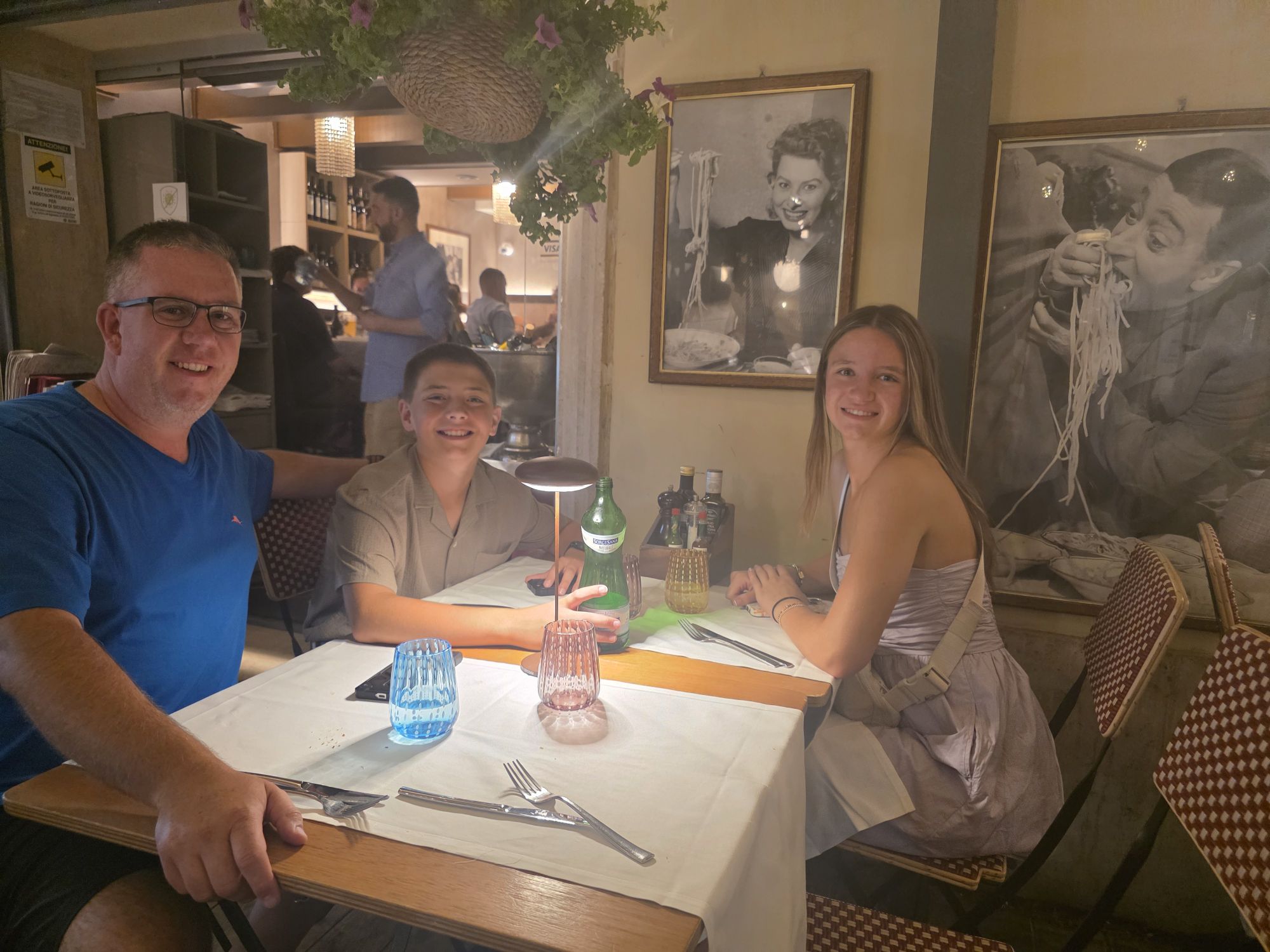 We arrived in Rome at about 12:30pm (Rome time). We had prebooked a shuttle to drop us off at our hotel, and we ended up four across in three seats for an hour. We were hot and tired and it made things extra exhausting.