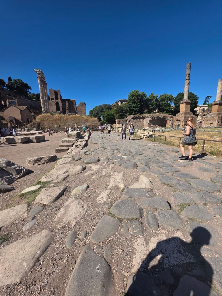Anyway, back to today’s tour. We started at 9am and started with the Roman Forum. Our tour guide was not my favorite personality, but definitely knew his Roman history. The Roman Forum is where Roman politics and business took place. The building of the forum started in the late 7th century BCE and continued into the 4th century CE. Unfortunately, due to war and pillagers, much of the buildings were damaged by more than just age and weather. Our guide told us that wherever you see exposed brick, marble once covered it.