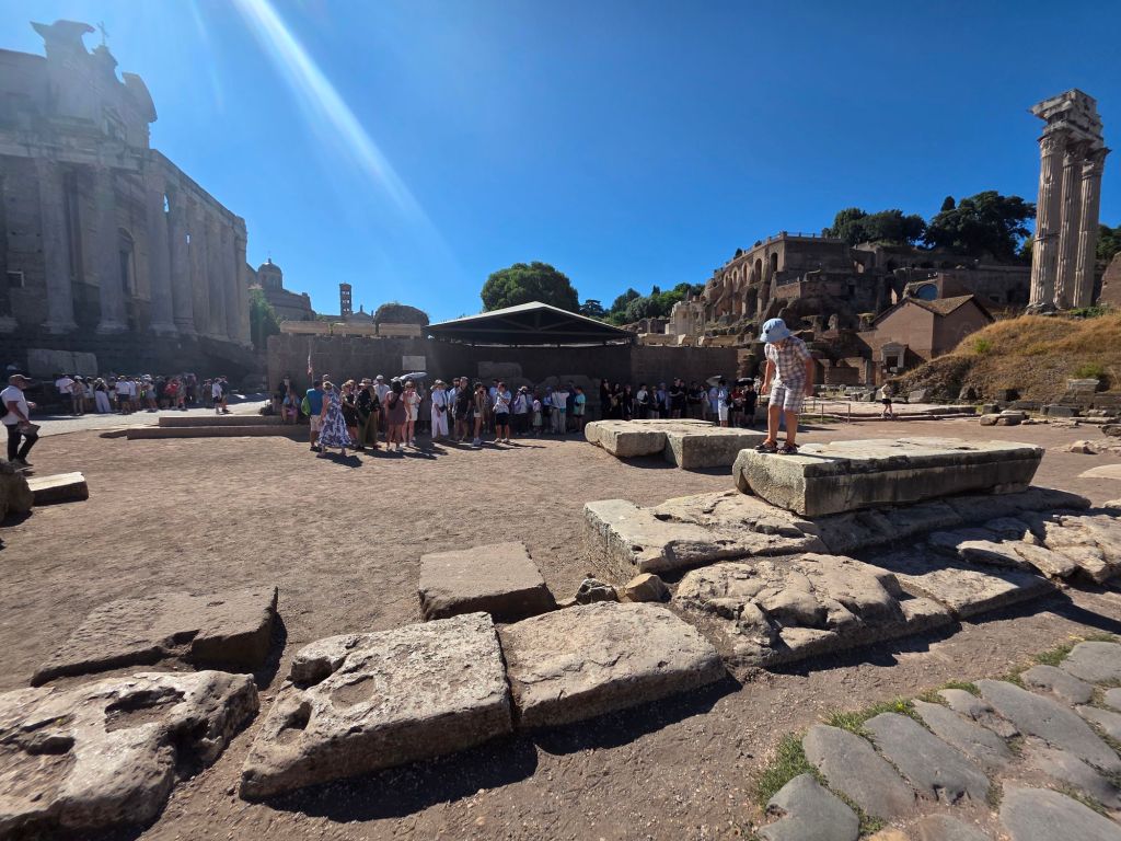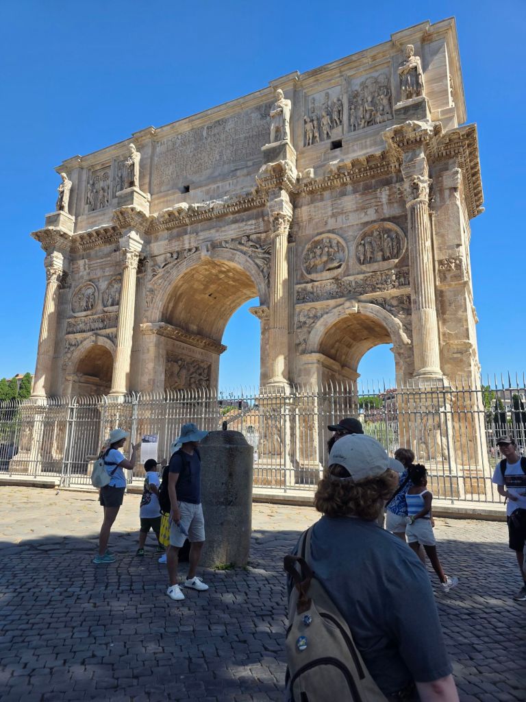 We started our day bright and early by walking to the Colosseum for our tour of the Roman Forum, Palatine Hill and the Colosseum. It is 100 degrees out again today, and full sun.