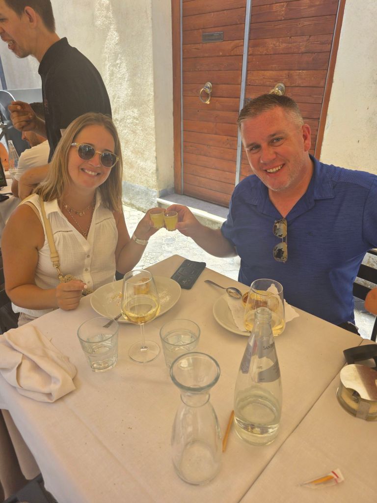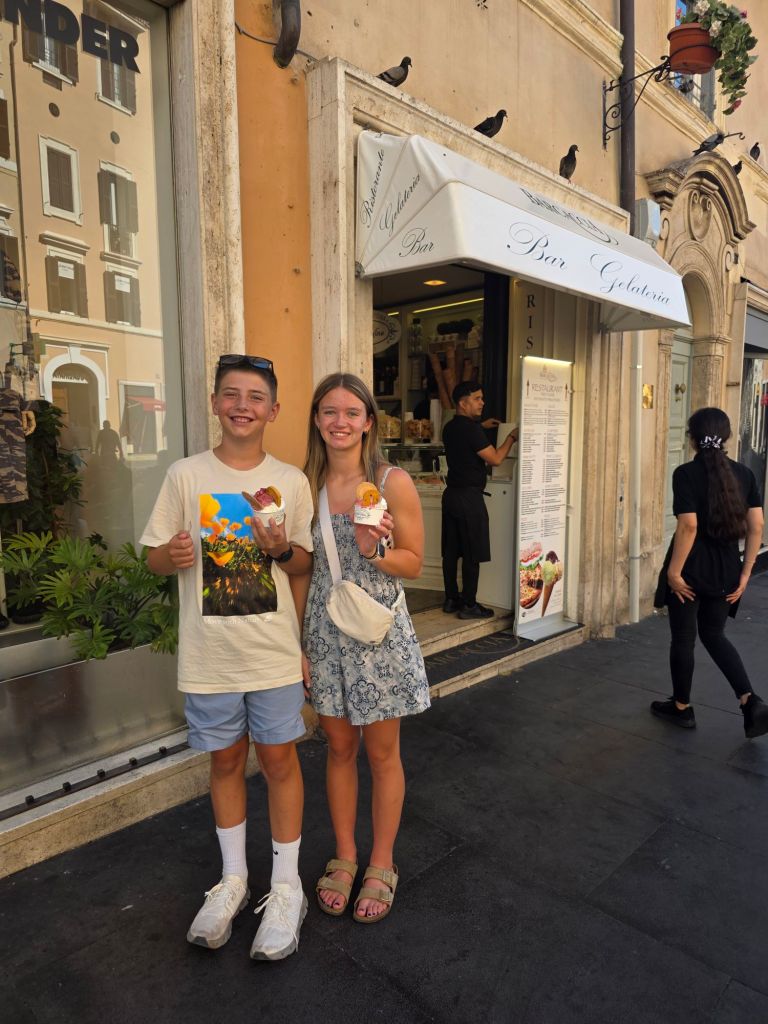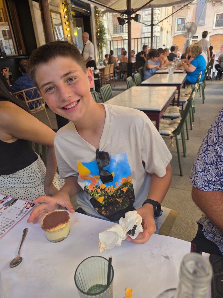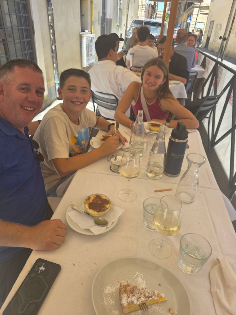 After our tour ended, we were exhausted and hungry. We took a Taxi to a restaurant we had went to in 2019 near the Vatican. The carbonara was excellent. Our waiter gave Dan and I limoncello shots after we told him we were on a return visit. We showed him a picture of Jack with our waiter from 2019 and he still works there, but wasn’t working until the evening. The inside of the restaurant was full of reservations, so we ate outside, which was, of course, hot.