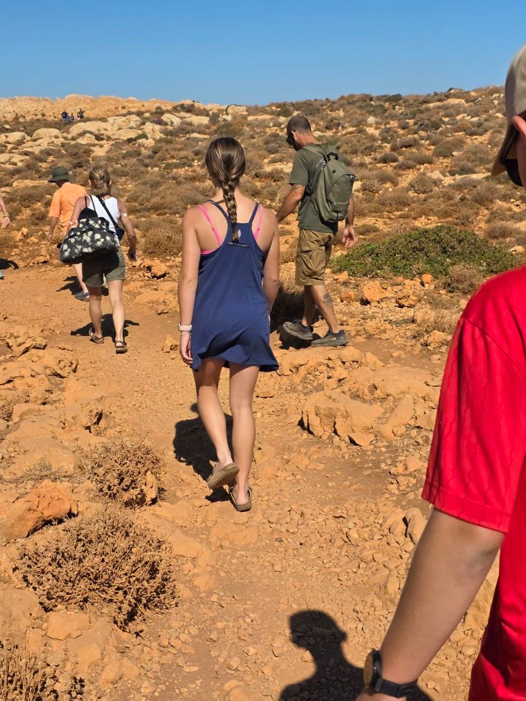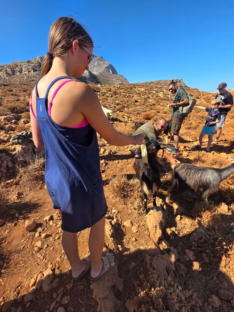 The guide showed up in a Land Rover, which should have been our first clue of our ride. For the first part of our trip, we headed to an overlook of Balos Beach. We were by textbook definition off-roading for half the trip. When we parked for the overlook, we still had a rocky path to the overlook. Along this drive, there were domesticated goats.
