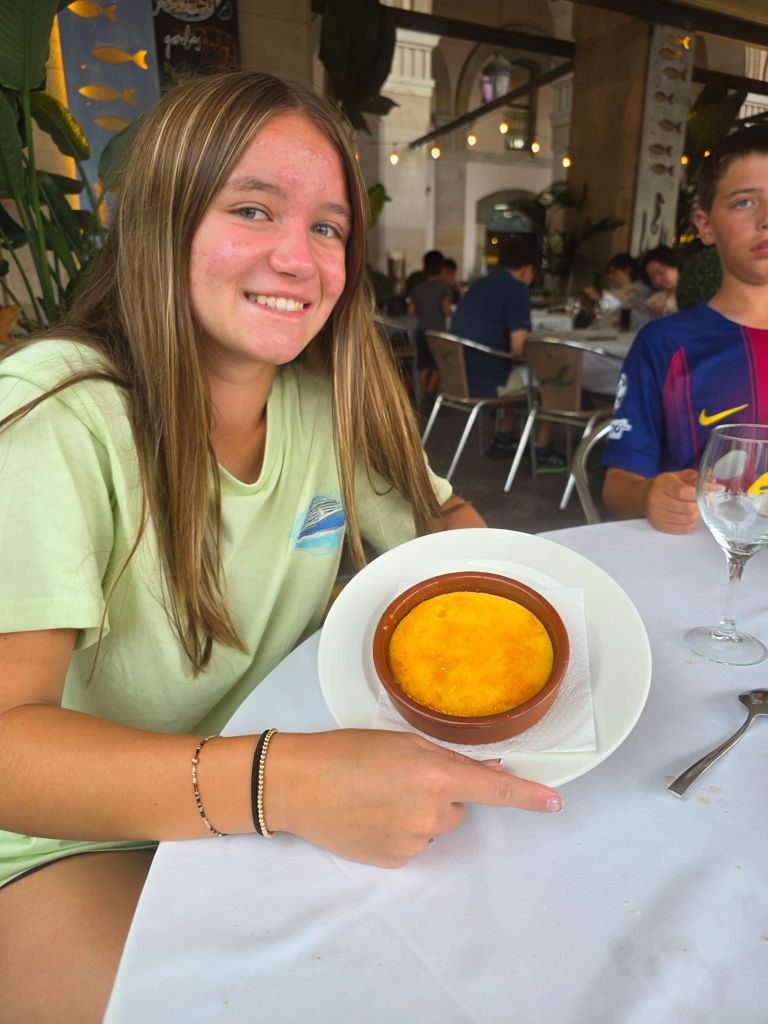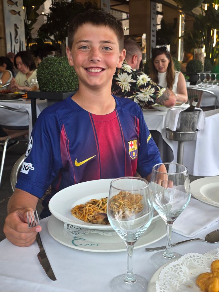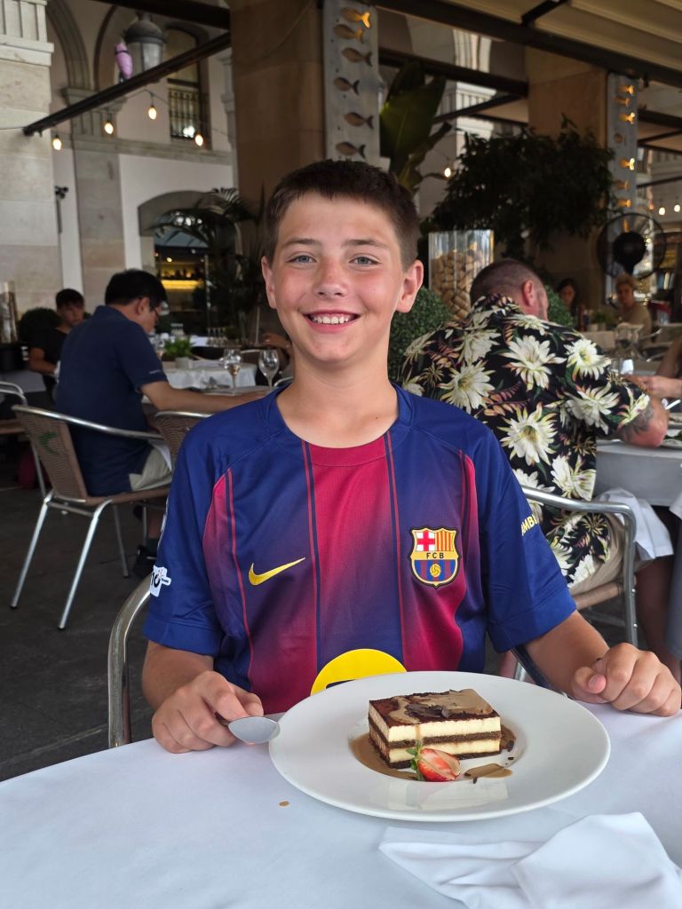 Back to Barcelona. After getting off the ship, we made our way to our hotel. After dropping our luggage, we did a little shopping. Jack loves buying soccer jerseys in Europe, so we went to the Barca Store and got him a jersey. We then went to lunch. We enjoyed a place along the pier last year, so we returned for some paella. Kate remembered how good they Creme Brulee was, so of course, she got that for dessert.