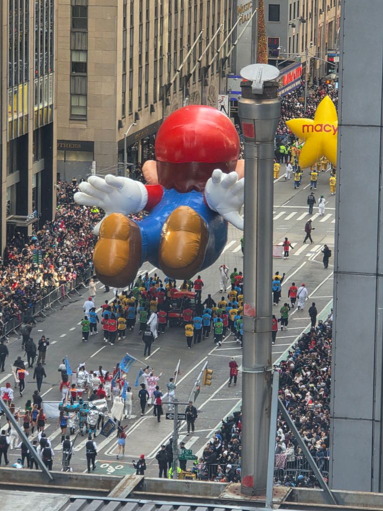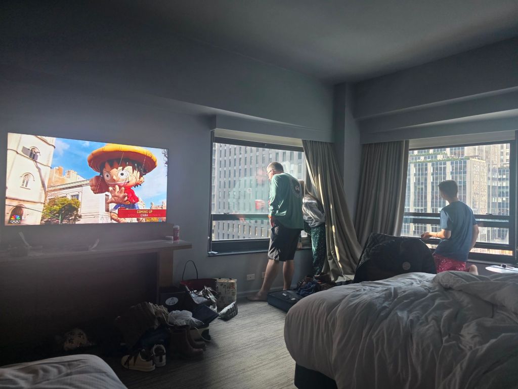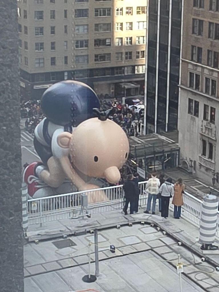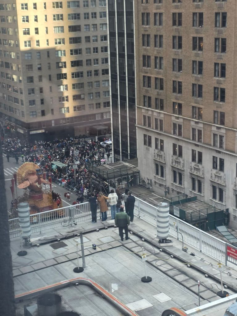 When we booked our hotel, Hilton Midtown, we specifically booked a room that we could watch the parade in. Dan spent a significant amount of time on the phone with a representative of the hotel to ensure we got a great room to view the parade. This is why we booked this particular hotel. We entered disappointed. The lower part of the hotel blocked any view of the street. If you put your face up against the window you could see a sliver of the parade coming. We had a decent view of the parade once it was past our hotel, so the backside of everything.